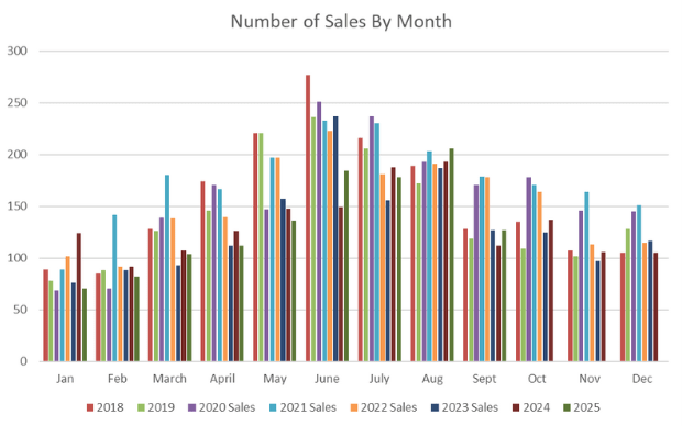 We continue to see the shortage of homes available be a significant factor in our market, though supply is currently at it’s highest point this year at 1.6 months. September remained seasonally strong, though year-to-date sales volume is still down 8.8% compared to 2024.